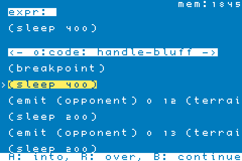 It's a real LISP dialect with a full numerical tower, support for async programming, and an optimizing bytecode compiler! Later in this post, I'll show the onscreen debugger!